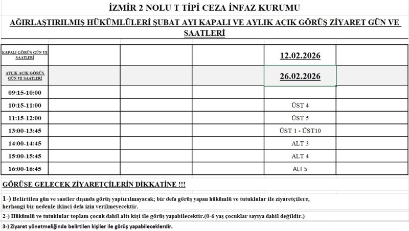 Aliağa ceza İnfaz Kurumları Kampüsü Bahçedere Köyü No: 63 Yenişakran/Aliağa- İZMİR